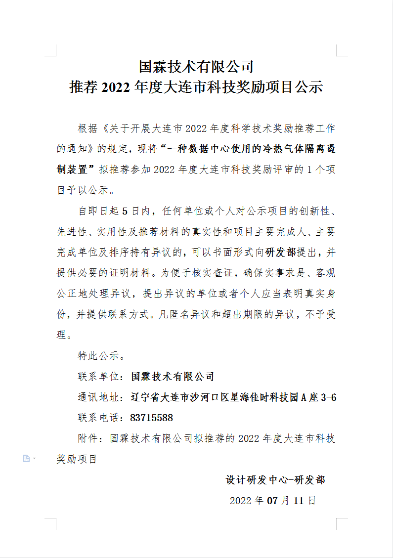 推薦2022年度大連市科技獎勵項目公示