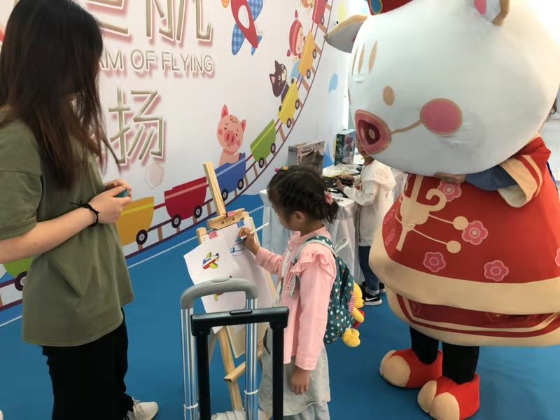 六一兒童節,在T1航站樓隔離區外9號門旁組織開展了“夢想起航,童心飛揚”兒童節文化活動。活動現場,“星際迷航”、“DIY彩繪飛機”等一系列航空趣味互動活動吸引了大批小朋友和家長的積極參與,可愛的“福小豬”人形玩偶與小朋友們一起做游戲互動,提前慶祝六一兒童節,現場不時傳來孩子和家長們的歡呼聲。活動旨在通過旅客互動活動,進一步拉近機場與旅客的距離,讓旅客在旅行的起點感受出行的美好體驗。