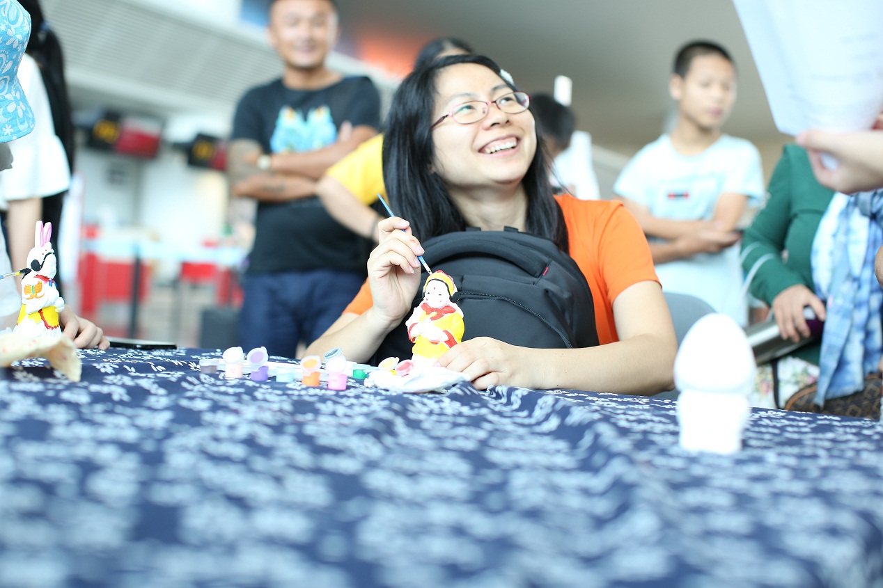 9月13日上午,在T1航站樓9號(hào)門旁開(kāi)展了“情系空港,愛(ài)滿中秋”文化活動(dòng)?;顒?dòng)圍繞嫦娥奔月、月圓團(tuán)聚等中秋文化元素,以回歸傳統(tǒng)、弘揚(yáng)民俗為立足點(diǎn),為旅客呈現(xiàn)了精彩的中秋歌舞表演,并與旅客進(jìn)行了“彩繪月兔”、“猜燈謎”等互動(dòng)活動(dòng)。航站樓內(nèi)洋溢著傳統(tǒng)節(jié)慶氛圍,為旅客的中秋旅途增加了濃厚的文化體驗(yàn)。