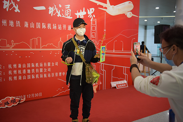當日,為慶祝杭州機場正式開通地鐵,航站區中心在T3航站樓內開展“一線連全城 一城通世界”文化主題活動?;顒友埩恕疤钱嫛薄安菥帯薄澳竺嫒藘骸薄八‘嫛钡人奈缓贾莘沁z傳承人到現場與旅客進行互動,傳授制作技巧,贈送手工藝品,讓旅客感受杭州地域文化。首位搭乘地鐵前來機場的旅客被邀請至活動現場,并獲得精美禮品。此外,活動現場還設置了拍照打卡背景墻。(李俊杰 任嘉婷)