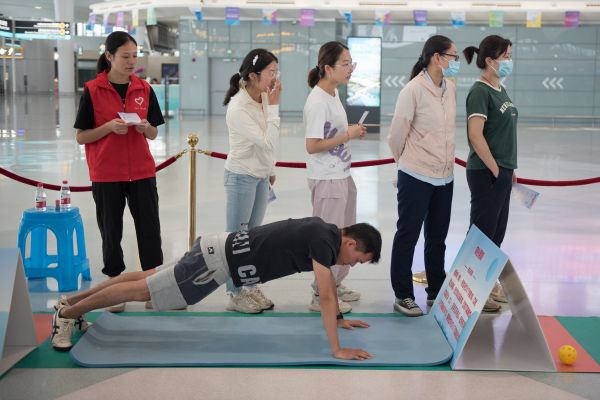 此次活動以游園會形式展開,共設有繩彩飛揚、摸石頭過河、足上功夫、乒來乓往、核心腰腹、有的放矢、一擊必中、花式籃球等八個項目。活動現(xiàn)場,一組可愛的亞運吉祥物玩偶吸引過往旅客參加趣味運動會。旅客在主舞臺領取活動卡片后便可在任一活動場地進行挑戰(zhàn),項目過關后工作人員在其活動卡片上蓋上籃球、射箭、足球、龍舟等杭州亞運賽事logo圖章,旅客可憑借最終圖章數(shù)量在主舞臺領取行李箱、茶壺等獎品。活動進一步營造了濃郁的喜迎亞運氛圍,弘揚拼搏奮進的體育精神,助力全民迎亞運。