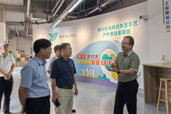 7月22日,杭州機場工會出租車、網約車蓄車區戶外勞動者驛站正式啟用。省總工會副主席施科,省總工會常委、省部屬企事業工會主席葉龍茂一行調研驛站建設情況,并開展高溫慰問。集團黨委委員、工會主席鄭智銀,杭州機場黨委副書記、工會主席邵勇敏陪同調研。